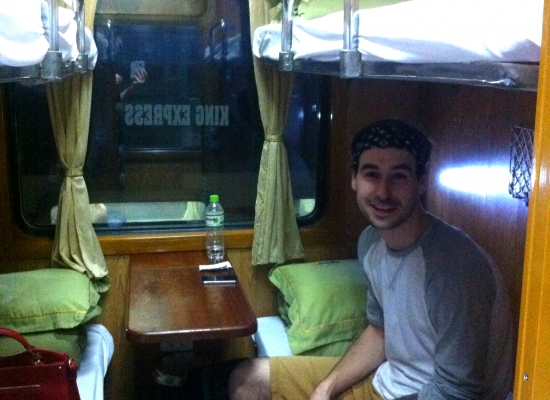Je hodina do odjezdu a to je čas, kdy už máme bejt na nádraží. My si jdeme ještě do skříňky vyndat bundy a ostatní věci, co chceme s sebou. V Sapě má bejt fakt chladno, tak to nehceme podcenit. Taky kupujem vody a nějaký sušenky na cestu a míříme na nástupiště podle lístku. Všecko maj dobře značený a když nevíte, tak vám poradí. Pak hledáme bez problému ještě náš vagón a kupé. Máme jedno místo nahoře a jedno dole. Já beru to nahoře a Adam začíná zkoušet postel. Začínáme se fakt bavit. Za prvý je ta postel s názvem soft bed tvrdá jako kámen, za druhý jsou na polštářích i peřinách všude žlutý fleky a za třetí jsou ty postele prostě krátký. Já se tam vejdu tak, že se mi hlava i nohy dotýkaj zdí a Adam musí ležet v pozici nenarozenýho plodu. Přijde nám to dost vtipný a dost nás to baví. Prostě takovej dobrodružnej vejlet. Kdyby to bylo všechno supr a pohodlný, tak nemáme na co vzpomínat. Obalujeme polštáře bundou, body belty s pasem, penězma a kartou dáváme pod kalhoty, přikrejváme se a čekáme na spolucestující. Přichází dvě mladý Vietnamky, takový místní modelíny. Jedna veze obří kosmetickej kufřík a druhá má umělý řasy až na strop. Každopádně mi to přijde dobrý. Bála jsem se nějakejch podezřelejch lidí, co by nás třeba okradli, ale s těmahle jsem v klidu. Dávám nabíjet mobil pod polštář (jo, každej má svoji zásuvku za hlavou), zhasínám světlo, zamykám kupé a jdu spát. Už jsem v polospánku, když jedna z těch krasavic začne kašlat tak, že to vypadá na tuberu a ta druhá začne s někym telefonovat. Kašlající slečna za hodinu usíná a je od ní klid, ale ta druhá telefonuje dál. Zřejmě s nějakym vietnamskym bavičem, protože se fůrt chechtá, fůrt něco mele a rozhodla se, že spát prostě nebude. Po třech hodinách, co kvůli ní ani jeden s Adamem nespíme, ji říkam pššššt. Koukne se na mě vražednym pohledem, na chvíli začne šeptat a po pěti minutách jede zase to samý. Přijíždíme do Lao Cai, což poznáme tak, že začne v kupé hrát hudba, která vás má probudit (jenže my nespali, takže nás to vzbudit nemohlo) a pak hlásí, že jsme na místě. Cesta trvala osum hodin a slečna z toho s někym telefonovala sedum a půl. Asi si dokážete představit, jak fresh oba dva vystupujeme na nádraží do novýho a náročnýho dne.