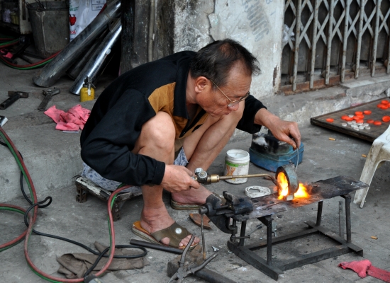 Oukej, jenže co jako budem teď dělat? Máme dvě obrovský krosny a v Hanoji jsme všechno zajímavý viděli. První je potřeba vyřešit, co s krosnama. Tahat se s něma celej den je totální nesmysl, takže se snažíme najít nějaký řešení. Navíc si je nechceme brát ani do Sapy, protože je to zbytečnej vopruz. Chceme mít jenom batoh s hygienou, spoďárama a foťákama. Rozhlížíme se na nádraží a vidíme skříňky. Jdeme k nim blíž a starý polorozpadlý skříňky nám nepřijdou úplně bezpečný. Potřebujeme si krosny schovat na tři dny a tohle může každej vylomit asi za deset sekund. Navíc nám nikdo neni schopnej říct, kolik to stojí, protože neví, na co se jich ptáme. Adam jde před nádraží a snaží se vymyslet jinou možnost. Za chvíli přichází s tím, že paní naproti v cestovce nám tam ty krosny za tři sta tisíc dongů pohlídá. Jdeme tam i s krosnama a zjišťujeme, kde by krosny byly. Paní ukazuje do rohu místnosti. Díváme se s Adamem na sebe a jeden pohled stačí k tomu, abysme se shodli, že tady fakt ne. Prostě bysme je tam měli opřít do rohu a doufat, že je tam najdem. To riskovat určitě nechceme. Děkujeme a snažíme se vymyslet nějakou další variantu. Nakonec zjišťujeme, že lepší varianta než skříňka na nádraží asi v týhle situaci neni. Našli jsme na netu ještě nějaký úschovny, ale byly děsně daleko. Vracíme se na nádraží a kousek od skříněk sedí paní, která tam před tím nebyla. Ptáme se jí na skříňku a ona začne něco vietnamsky. Vytahujeme poprvý slovníček a ukazujeme na frázi ohledně ceny. Na papírek nám píše cenu za den a my jí píšeme, že chceme dny tři. Dává nám slevu a my s cenou nakonec souhlasíme. Skříňka nás na tři dny stojí dvě stě padesát tisíc dongů a dostáváme ještě klíč od malýho zámečku, kterej tam můžem zamknout. O bezpečnosti tý skříňky si fůrt myslíme svoje, ale nezbejvá nic jinýho. Dvě krosny se do jedný skříňky vejdou jen tak tak, bezpečný to moc neni, ale my jsme rádi, že jsme se jich konečně zbavili. Jdeme si za paní pro papírek o zaplacení a potkáváme u ní dva Čechy. Zjišťujeme, že jedou taky večer do Sapy, akorát tím vlakem dřív. Chtějí skříňku, tak jim pomáháme vykomunikovat nějakou cenu. Jedou do Sapy jen na den a nechtějí tam ani spát, takže potřebujou jenom dva dny. Pak se dáváme do řeči a nakonec jdeme společně s Tomášem a Evou na pivo. Nikdo z nás nespěchá, tak proč si na chvíli někam nesednout. Dáváme pivo (točený pivo asi za dvanáct tisíc dongů), povídáme o Vietnamu a říkáme si první pocity z týhle země. Pak se rozdělujeme, přejeme si hodně štěstí ve vlaku na spolucestující a hezkou dovolenou.