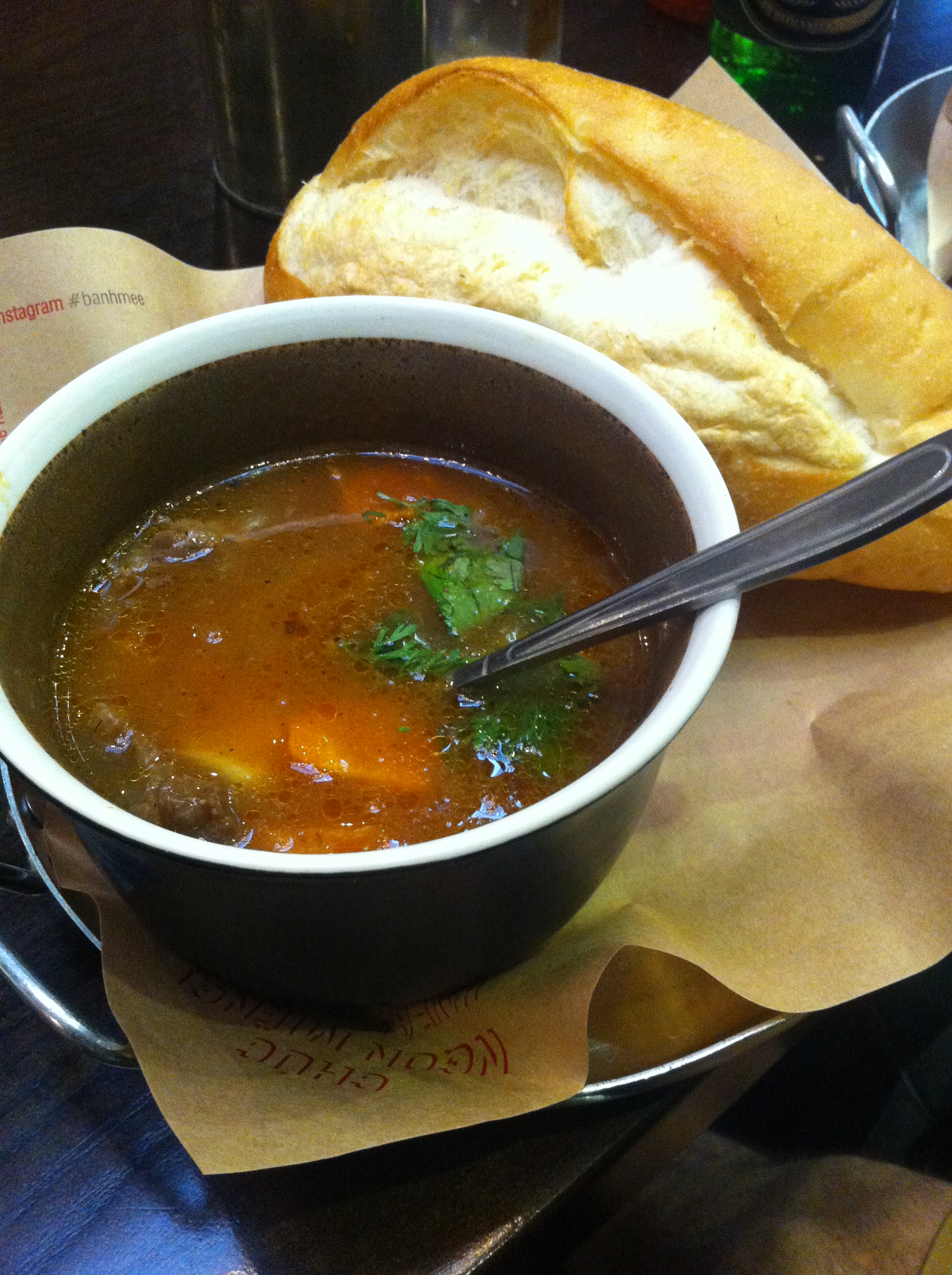 Krosny jsme vyřešili, Hanoj jsme viděli, takže co teď? Jdeme k jezeru. Už potřetí. Sedáme opět na lavičku a přemýšlíme, co budeme dělat. Já chci ochutnat nějakou Bánh Mi bagetu, ale jsem trošku ztracená. Nevím kam na ni zajít, tak píšu přes Instagram mým oblíbencům z Bánh Mí Makers, aby mi poradili. Vím, že jsou z Hanoje, takže komu jinýmu napsat. Obratem mi přijde fotka s adresou a my se tam hned vydáváme. Bistro Bánh Mee je hned vedle katedrály sv. Josefa. Objednáváme si tři různý druhy baget, abysme jich mohli ochutnat co nejvíc. Dvě bagety jsou klasicky naplněný masem, zeleninou a koriandrem. Třetí není plněná vůbec a přinesli k ní nějakou polívku s hovězím masem, mrkví a bylinkama. Bagety byly na chuť dobrý, ale trošku sušší. Vítězem se tak stala dokonalá hovězí polívka s kopou zeleniny a bylinkama (podle mě to bylo něco jako Bó Khó, něco na způsob našeho guláše po vietnamsku). Za tohle jídlo fakt palec nahoru. Sedíme chvíli ještě v bistru a využíváme místní wifi. Adam stahuje offline mapy, abysme se v Sapě neztratili. Stahuje mapu celýho Vietnamu a já jsem zvědavá, jak takový offline mapy budou fungovat. Pak se díváme do mapy Hanoje a přemejšlíme, kam bysme ještě mohli jít. Někde jsme četli, že je v Hanoji známej ještě most Long Bien. Je kousek, tak se k němu vydáváme. Po patnácti minutách chůze, kdy nás nepřestává bavit se dívat kolem sebe a divit se všemu co vidíme (sváření, vaření, prodávání, spaní, holení, stříhání, vyroba různejch věcí, milion motorek), stojíme podle mapy přímo před mostem. Jenže my vidíme jenom sloup od podjezdu a most je až za ním. Snažíme se to teda nějak obejít a dostat se na most. Jenže zjišťujeme, že i když to vypadá snadně a je to přímo před náma, neni zas tak snadný, se tam dostat. Musíme projít několik bloků, abysme se vůbec dostali na druhou stranu přes malej mostík. Když se tam konečně dostaneme, přicházíme do nějaký šílený ulice, kde je samej bordel, šílenej smrad a lidi na nás divně koukaj. Taky se tam potulujou psi a kočky. Když tou ulicí konečně projdeme, zjišťujeme, že nikam nevede a že musíme zpátky. V tu chvíli už říkám, že ten most vidět nepotřebuju a že na to kašlem. Adam se ale přece teď neotočí, když už jsme tady, takže volí jedinou možnost. Tou je jít asi padesát metrů po krajnici asi pětiproudý silnice, kde jezdí milion motorek. Ne, neni tam žádnej chodník a já fakt nechci, aby mě srazila motorka. Odmítám tam jít a Adam se mě snaží přemlouvat. Nakonec se nechávám přemluvit a běžim po krajnici, abych to měla co nejdřív za sebou. Motorky kolem mě lítaj a já si nadávám, že jsme sem vůbec šli. Po týhle šílený cestě přicházíme k mostu a je to starej ošklivej kovovej most, kterej za to absolutně nestojí. Jezdí tam milion aut a neni na tom nic zajímavýho. Asi je hezčí a zajímavější, když ho vidíte celej ze strany, ale v tuhle chvíli mě most Long Bien přestal zajímat a chci jít pryč. Ani ho nefotim. Jenže musíme zpátky zase přes tu krajnici a já zase běžim, Adam se mi směje, ale mně přebíhání obrovský silnice ve Vietnamu zas tak vtipný nepřijde. To už je podruhý, co jsme se někam táhli kvůli mostu a nestálo to za nic. Poprvý to bylo ve Franii v Carcassonne a most jsme nakonec ani nenašli. Žádný mosty už nikdy hledat nebudu. No, super nápad s hnusnym starym rezavym mostem je za náma a fůrt nám zbejvá asi sedum hodin čas.