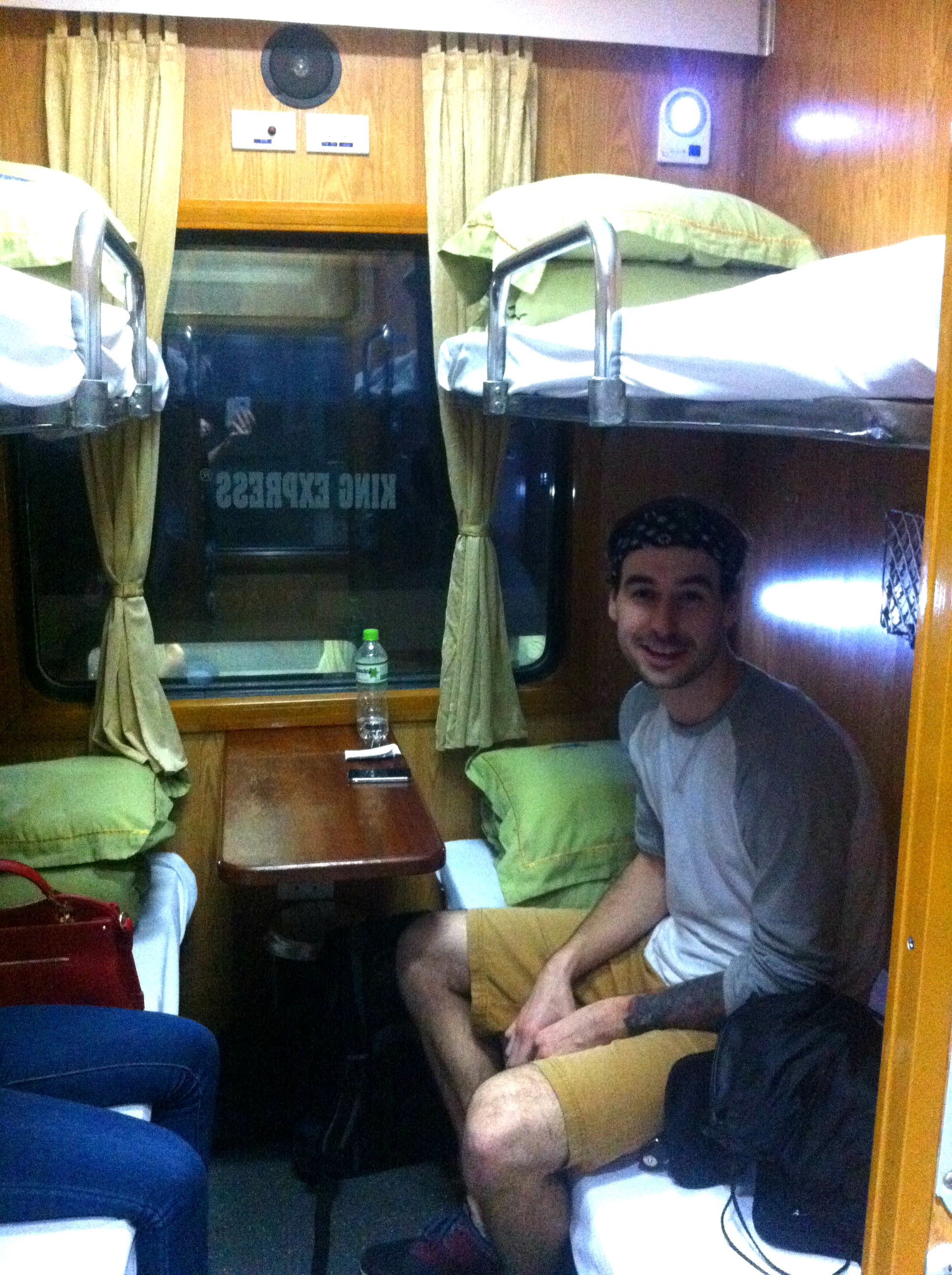 Je hodina do odjezdu a to je čas, kdy už máme bejt na nádraží. My si jdeme ještě do skříňky vyndat bundy a ostatní věci, co chceme s sebou. V Sapě má bejt fakt chladno, tak to nehceme podcenit. Taky kupujem vody a nějaký sušenky na cestu a míříme na nástupiště podle lístku. Všecko maj dobře značený a když nevíte, tak vám poradí. Pak hledáme bez problému ještě náš vagón a kupé. Máme jedno místo nahoře a jedno dole. Já beru to nahoře a Adam začíná zkoušet postel. Začínáme se fakt bavit. Za prvý je ta postel s názvem soft bed tvrdá jako kámen, za druhý jsou na polštářích i peřinách všude žlutý fleky a za třetí jsou ty postele prostě krátký. Já se tam vejdu tak, že se mi hlava i nohy dotýkaj zdí a Adam musí ležet v pozici nenarozenýho plodu. Přijde nám to dost vtipný a dost nás to baví. Prostě takovej dobrodružnej vejlet. Kdyby to bylo všechno supr a pohodlný, tak nemáme na co vzpomínat. Obalujeme polštáře bundou, body belty s pasem, penězma a kartou dáváme pod kalhoty, přikrejváme se a čekáme na spolucestující. Přichází dvě mladý Vietnamky, takový místní modelíny. Jedna veze obří kosmetickej kufřík a druhá má umělý řasy až na strop. Každopádně mi to přijde dobrý. Bála jsem se nějakejch podezřelejch lidí, co by nás třeba okradli, ale s těmahle jsem v klidu. Dávám nabíjet mobil pod polštář (jo, každej má svoji zásuvku za hlavou), zhasínám světlo, zamykám kupé a jdu spát. Už jsem v polospánku, když jedna z těch krasavic začne kašlat tak, že to vypadá na tuberu a ta druhá začne s někym telefonovat. Kašlající slečna za hodinu usíná a je od ní klid, ale ta druhá telefonuje dál. Zřejmě s nějakym vietnamskym bavičem, protože se fůrt chechtá, fůrt něco mele a rozhodla se, že spát prostě nebude. Po třech hodinách, co kvůli ní ani jeden s Adamem nespíme, ji říkam pššššt. Koukne se na mě vražednym pohledem, na chvíli začne šeptat a po pěti minutách jede zase to samý. Přijíždíme do Lao Cai, což poznáme tak, že začne v kupé hrát hudba, která vás má probudit (jenže my nespali, takže nás to vzbudit nemohlo) a pak hlásí, že jsme na místě. Cesta trvala osum hodin a slečna z toho s někym telefonovala sedum a půl. Asi si dokážete představit, jak fresh oba dva vystupujeme na nádraží do novýho a náročnýho dne.