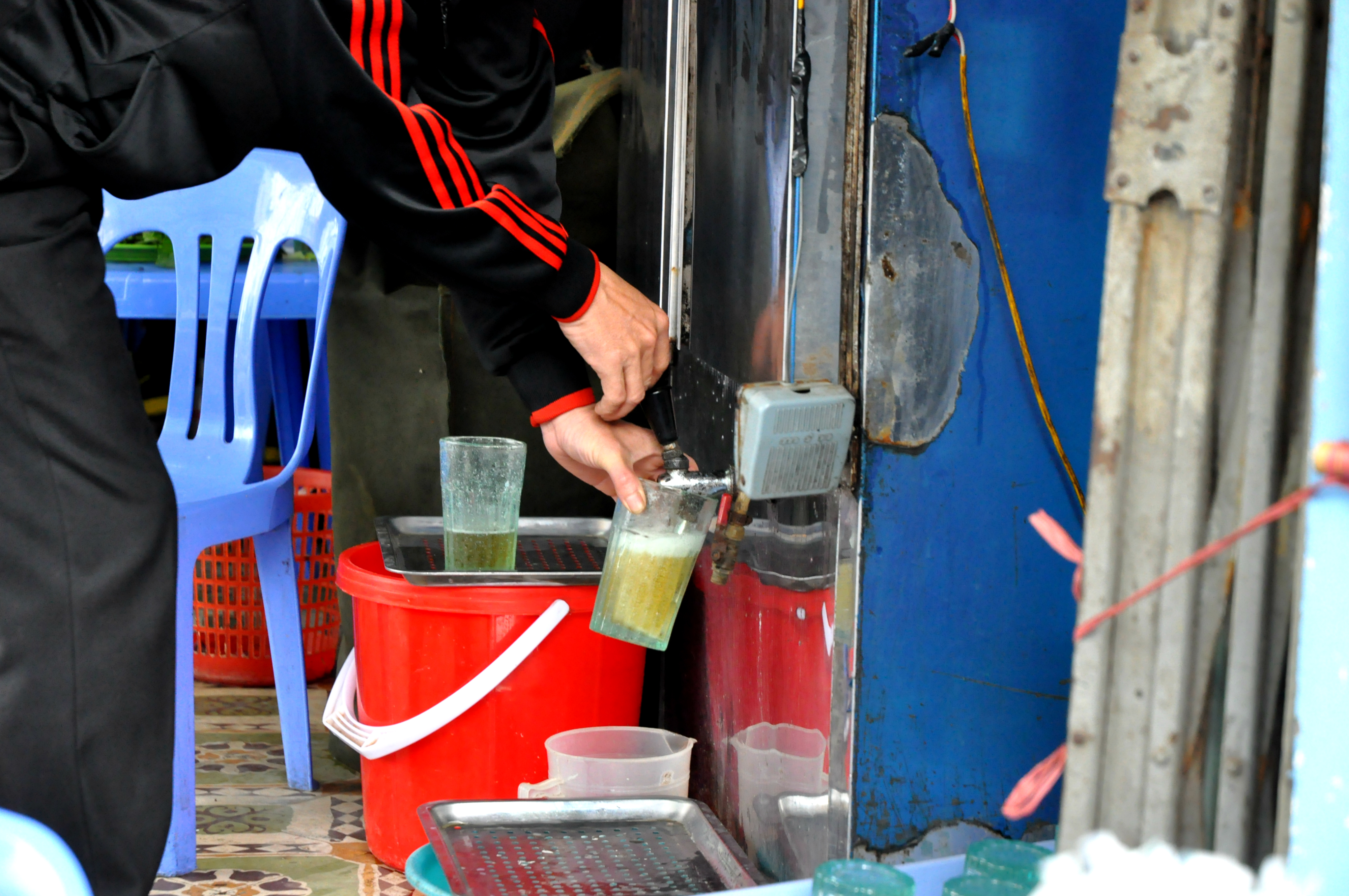 Oukej, jenže co jako budem teď dělat? Máme dvě obrovský krosny a v Hanoji jsme všechno zajímavý viděli. První je potřeba vyřešit, co s krosnama. Tahat se s něma celej den je totální nesmysl, takže se snažíme najít nějaký řešení. Navíc si je nechceme brát ani do Sapy, protože je to zbytečnej vopruz. Chceme mít jenom batoh s hygienou, spoďárama a foťákama. Rozhlížíme se na nádraží a vidíme skříňky. Jdeme k nim blíž a starý polorozpadlý skříňky nám nepřijdou úplně bezpečný. Potřebujeme si krosny schovat na tři dny a tohle může každej vylomit asi za deset sekund. Navíc nám nikdo neni schopnej říct, kolik to stojí, protože neví, na co se jich ptáme. Adam jde před nádraží a snaží se vymyslet jinou možnost. Za chvíli přichází s tím, že paní naproti v cestovce nám tam ty krosny za tři sta tisíc dongů pohlídá. Jdeme tam i s krosnama a zjišťujeme, kde by krosny byly. Paní ukazuje do rohu místnosti. Díváme se s Adamem na sebe a jeden pohled stačí k tomu, abysme se shodli, že tady fakt ne. Prostě bysme je tam měli opřít do rohu a doufat, že je tam najdem. To riskovat určitě nechceme. Děkujeme a snažíme se vymyslet nějakou další variantu. Nakonec zjišťujeme, že lepší varianta než skříňka na nádraží asi v týhle situaci neni. Našli jsme na netu ještě nějaký úschovny, ale byly děsně daleko. Vracíme se na nádraží a kousek od skříněk sedí paní, která tam před tím nebyla. Ptáme se jí na skříňku a ona začne něco vietnamsky. Vytahujeme poprvý slovníček a ukazujeme na frázi ohledně ceny. Na papírek nám píše cenu za den a my jí píšeme, že chceme dny tři. Dává nám slevu a my s cenou nakonec souhlasíme. Skříňka nás na tři dny stojí dvě stě padesát tisíc dongů a dostáváme ještě klíč od malýho zámečku, kterej tam můžem zamknout. O bezpečnosti tý skříňky si fůrt myslíme svoje, ale nezbejvá nic jinýho. Dvě krosny se do jedný skříňky vejdou jen tak tak, bezpečný to moc neni, ale my jsme rádi, že jsme se jich konečně zbavili. Jdeme si za paní pro papírek o zaplacení a potkáváme u ní dva Čechy. Zjišťujeme, že jedou taky večer do Sapy, akorát tím vlakem dřív. Chtějí skříňku, tak jim pomáháme vykomunikovat nějakou cenu. Jedou do Sapy jen na den a nechtějí tam ani spát, takže potřebujou jenom dva dny. Pak se dáváme do řeči a nakonec jdeme společně s Tomášem a Evou na pivo. Nikdo z nás nespěchá, tak proč si na chvíli někam nesednout. Dáváme pivo (točený pivo asi za dvanáct tisíc dongů), povídáme o Vietnamu a říkáme si první pocity z týhle země. Pak se rozdělujeme, přejeme si hodně štěstí ve vlaku na spolucestující a hezkou dovolenou.