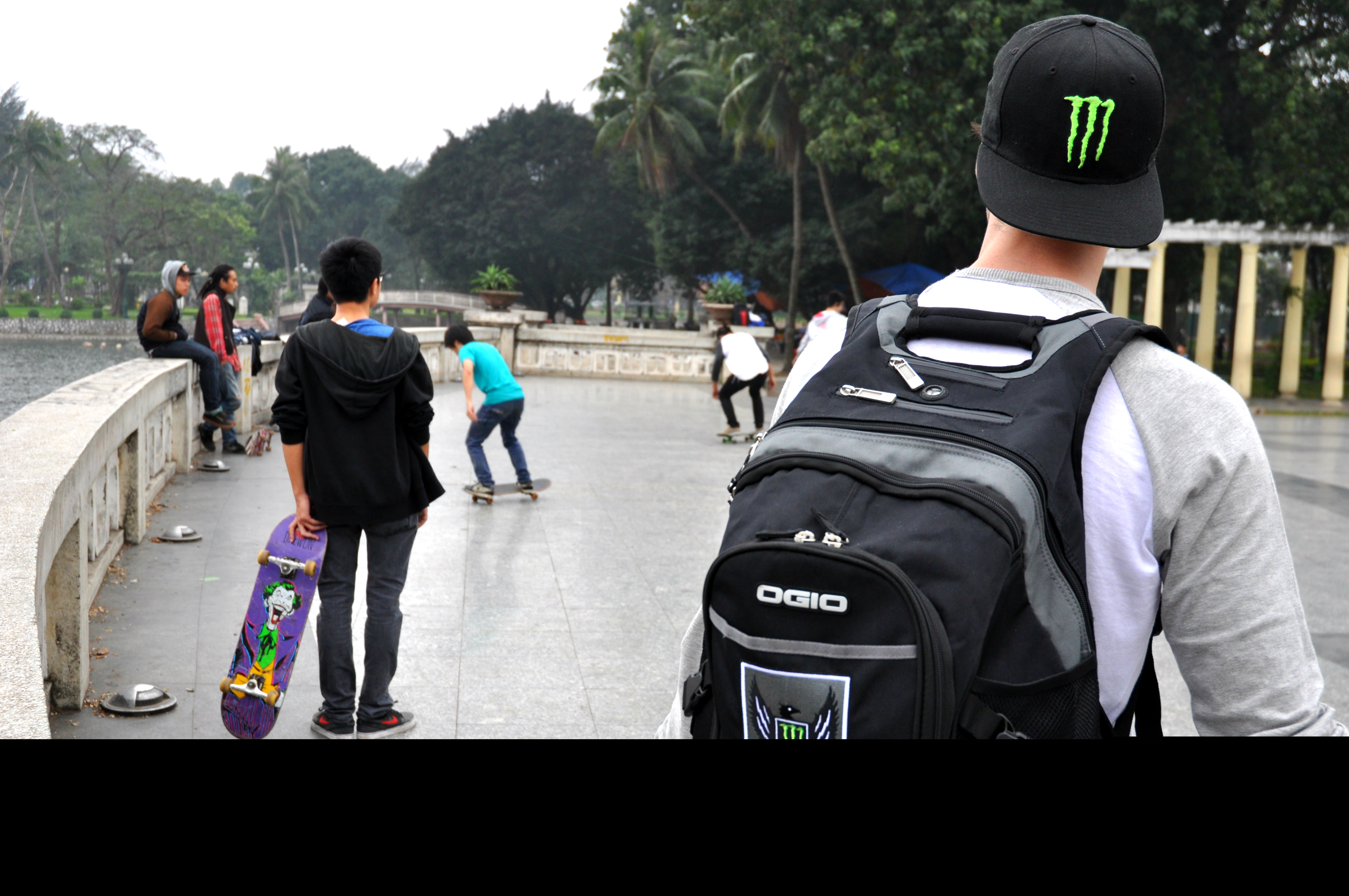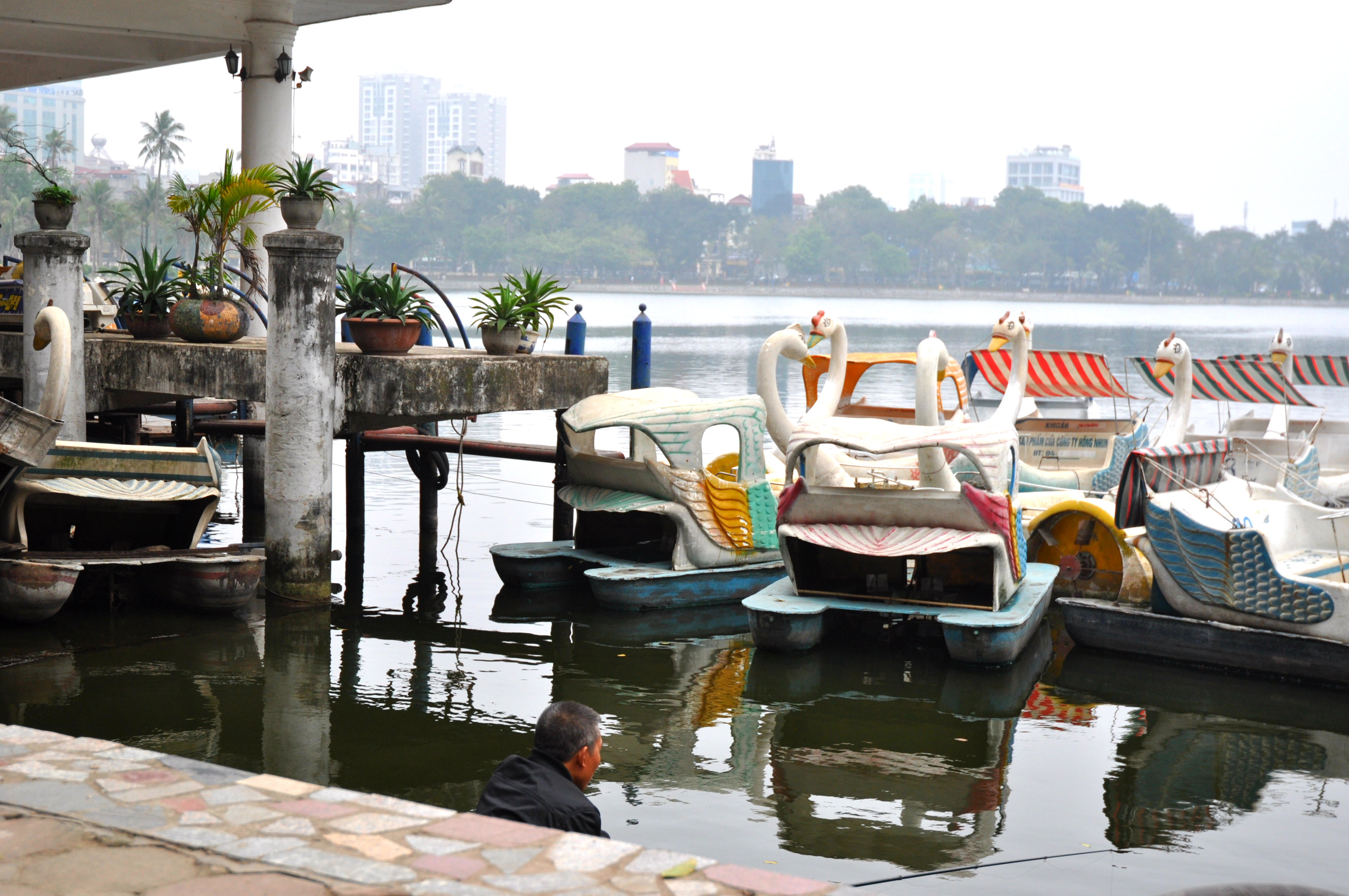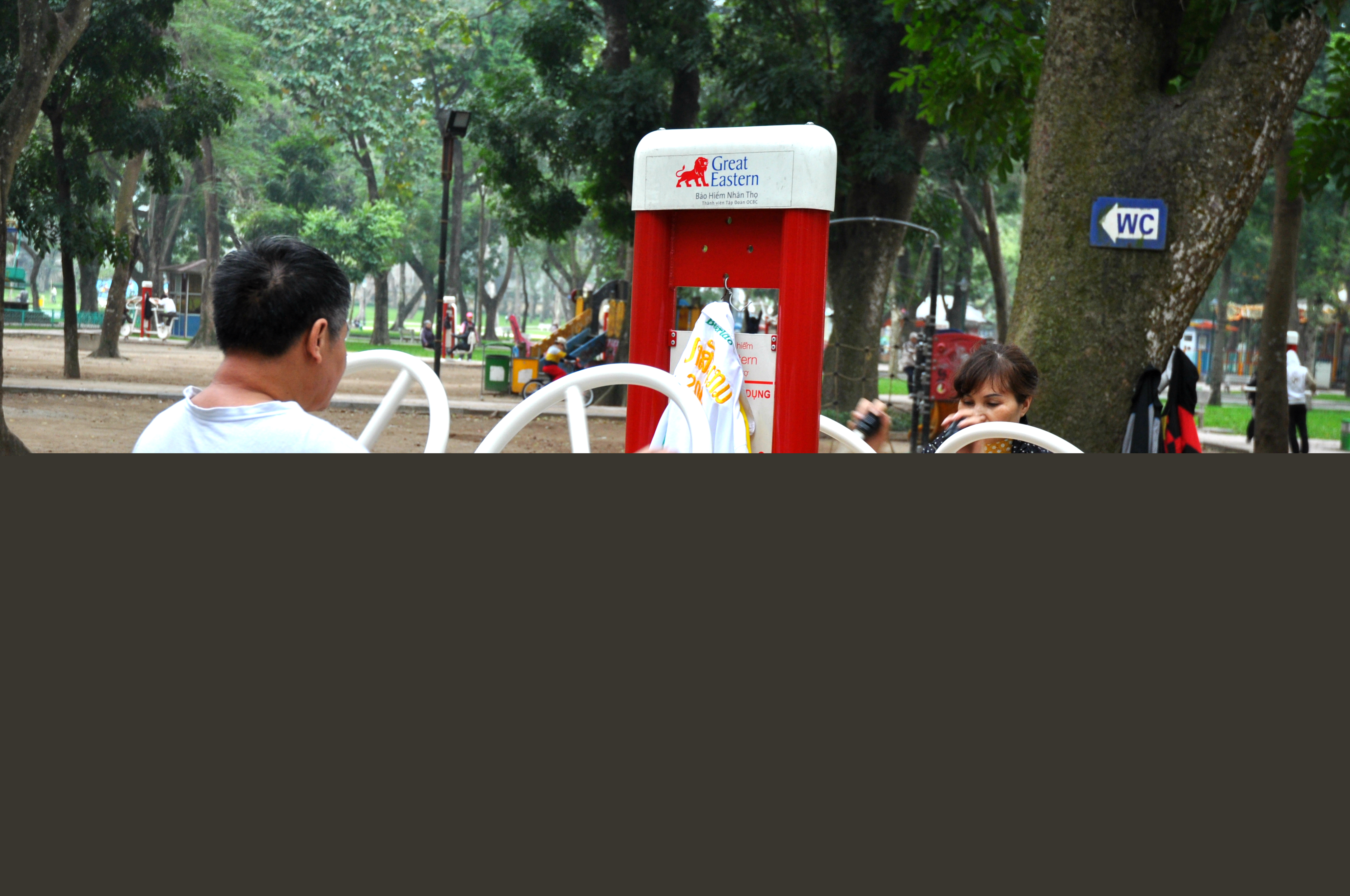 Jsem z toho všeho unavená, tak dáváme pauzu na kafe. Klasický Cà Phê Sữa đá vyřeší každej problém a hlavně nám dodává chybějící energii. Koukáme znova na mapu Hanoje a všímáme si nějakýho obrovskýho parku s jezerem. Ještě jsme tam nebyli, máme milion času, tak proč ne. Pěšky je to celkem dálka a já začínam bejt dost ušmajdaná. Každopádně po půl hodině stojíme před bránou s nápisem Lenin park a nevíme, co máme čekat. U brány se vybírá vstupný čtyři tisíce dongů za osobu, tak to platíme a jdeme tam. Vzhledem k tomu, že si s Adamem moc nečteme a neprohlžíme dopředu info o tom, co to má bejt, nestačíme se pak divit (třeba s tim šílenym mostem, že jo). Vcházíme do prostoru, kde nás hned na začátku vítá strašidelná polorozpadlá atrakce a k tomu psycho hudba jak z nějakýho strašidelnýho filmu. Jdeme dál. Čím dál jdeme, tím to vypadá líp. Zjišťujeme, že tenhle park je taková relaxační a sportovní oáza pro všechny. Lidi sem chodí běhat, cvičit, procházet se nebo skejtovat. Zastavujeme se u několika posilovacích strojů, který jsou určený pro každýho, kdo jde kolem. Tady na nich cvičí především starý lidi a my nedokážem zastavit smích. Je to absolutně skvělý, prej je to i u nás v Čechách, ale já to nikdy neviděla a teď na tom vidim cvičit malý Vietnamce. Nejsou to prostě normální stroje, jsou to různý kola a houpačky a já nevim co všechno. Točíme to, fotíme to a jdeme dál. Tam je to zas dost strašidelný. Rozpadlá stará horská dráha s dračíma vozejkama, která už dávno nejzdí, fůrt hraje ta divná hudba a kolem celýho parku vedou nějaký malý koleje, po kterejch nic nejezdí. Přicházíme k obrovskýmu jezeru, kde se půjčujou lodičky. Na vodě je ale jenom jedna, asi kvůli počasí. Fouká a je pod mrakem. Sedíme a pozorujeme vedle nás na plácku skupinku mladejch skejťáků, jak jezděj. Adam si to jako správnej skejťák samozřejmě fotí a točí na GoPro a všichni jsou z toho tam nadšený. Najednou jezděj jako kdyby o něco soutěžili a předháněj se, kdo dá lepší trik, což je sranda. Po hodině nic nedělání jdeme projít zbytek parku a jdeme směrem na nádraží. Sice máme ještě něco přes tři hodiny čas, ale už tu fakt nemáme co dělat. Sedáme si do kavárny Highlands Coffee před nádražím, objednáváme si další kafe a Bánh Mí a dohromady platíme asi sto tisíc dongů. Kafe mi chutná, Bánh Mí ne. Je tu wifi, zásuvky a maj pohodlný křesla. Já dopisuju deník a Adam střídavě přetahuje fotky na Dropbox, dobíjí elektroniku a čte si. Takhle nějak tam trávíme asi dvě a půl hodiny před odjezdem.