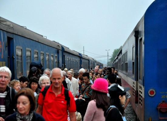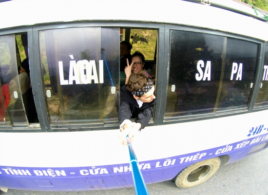 Vystupujeme uplně vyřízený a rozlámaný na nádraží v Lao Cai. Aspoň, že ve vlaku tekla voda, vyčistili jsme si zuby a já se tim trošku probrala. Z vlaku vystupuje neskutečný množství turistů a na ty se valí obrovský množství nahaněčů, který nabízej předraženej odvoz do Sapy. V tuhle chvíli je potřeba bejt nekompromisní a všem říct rovnou ne. Slyšeli jsme pár nabídek na cenu a bylo to fakt šílený. Do Sapy se jede hodinu a chtěli za cestu minibusem třeba i šest set tisíc dongů. Nevim, co je smutnější. Jestli ta drzost si o takový peníze vůbec říct nebo to, že jim to turisti v klidu zaplatí. Každopádně my za to tyhle nehorázný prachy odmítáme dát a snažíme se vykličkovat z tohodle šílenství. Před odjezdem jsem díky informacím ze stránky www.severni-vietnam.cz věděla, že tam jezdí nějaký linkový autobusy, který stojej kolem padesáti tisíc dongů. Jenže nevíme, odkud tyhle autobusy jezdí. Je strašně brzo ráno a nikde ty linkový autobusy nemůžeme najít. Nevim, jestli tady zrovna nejezdí nebo jsme je přehlídli, ale prostě žádnej linkovej bus tu teď neni. Používáme poprvý offline mapy a jdeme směrem autobusový nádraží. Nějaký busy tady jsou, ale neni tu nic, z čeho se dá vyčíst, kterej bus kdy, kam a za kolik jede. Nezbejvá nám nic jinýho, než chodit autobus po autobusu a ptát se přímo těch řidičů. Zní to jako jednoduchej úkol, ale když vezmete v potaz to, že ani jeden z řidičů neumí anglicky, stává se z jednoduchýho úkolu půl hodinovej a skoro nereálnej úkol. Po chvíli zoufalství, který mě začíná přepadat, na mě Adam volá, že ten bus našel a ať jdu za nim. Adam stojí u něčeho, čemu se nedá říct asi ani autobus. Nazvala bych to spíš pojízdnym vrakem, kterej maj na starost tři vysmátý Vietnamci. Prej nás tam hoděj každýho za třicet tisíc dongů. Což o to, cena je super, ale mně se v hlavě honí myšlenka, že tu cestu do Sapy nemusíme v tomhle nadupanym stroji přece jenom přežít. Na druhou stranu tady máme fakt, že nic jinýho tam zřejmě v nejbližší době nejede a tím pádem nezbejvá nic jinýho, než si s něma plácnout a za hodinu s něma odjet do Sapy.