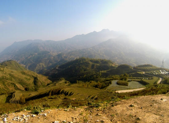 Máme motorku, máme domluvenej nocleh a můžeme vyrazit. Je určitě potřeba zmínit, že Adam řídí skútr poprvý v životě, takže probíhá taková menší seznamovačka. Tenhle skútr není plně automatickej, takže se musí řadit a to je potřeba si párkrát zkusit. Adam ale jako zdatnej řidič nemá s motorkou žádnej problém a po chvilce už řídí jako pravej závoďák. Před cestou si ještě dáváme rychlý Bún Chá a vyrážíme do vesnice Cat Cat. Z náměstí v Sapě vyrážíme směrem do hor. Svítí sluníčko, je krásně teplo a my jsme s Adamem naprosto spokojený. A koho cestou do hor nepotkáváme u krajnice. Tomáše s Evou! Fakt náhoda. Přijeli sem jenom na jeden den a chtěj si projít pár míst pěšky. Koukáme společně do mapy a ukazujeme si místa, kam máme namířeno. Po pár minutách zjišťujeme, že jsme všichni uplně mimo a máme namířeno špatnym směrem. Zapínáme tím pádem na jistotu offline mapy v mobilu a zjišťujeme, že se musíme vrátit a jet směrem do údolí. Hledáme cestu ještě Tomášovi a Evě, pak se loučíme a přejeme hodně štěstí a zážitků. My sedáme zase na náš stroj a jedeme na druhou stranu. Místo do hor teď směřujeme víc do údolí a začíná se lehce ochlazovat. Po dalších pár kilometrech se neochlazuje lehce, ale je šílená kosa. Tipuju tak 15 stupňů teplotní rozdíl. Zastavujeme u krajnice, oblíkáme si bundy a pokračujem ještě níž. Po pár minutách vjíždíme do vesnice Cat Cat, ale nic nevidíme. Všude je neskutečná mlha a nevypadá to, že by v nejbližší době ustoupila. Já začínám lehce panikařit, protože jsem zatim neviděla jedinou rejžovou terasu. A prostě když jedete do Sapy, tak nic jinýho ani neočekáváte. Adam bere klasicky všechno v pohodě a navrhuje, že pojedeme teď dopoledne do hor a pak se odpoledne vrátíme. Přijde mi to rozumnej nápad, nasedáme na motorku a projíždíme kolem místa, kde jsme před chvíli zjistili, že jedeme špatně. Pokračujeme ještě několik kilometrů do hor, sundaváme bundy a začínáme se kochat neskutečnym výhledem. Sice nevidíme žádný pěkný rejžový terasy, za to ale vidíme nádherný údolí, který je celý v mlze. Chvíli tam jen tak sedíme, kocháme se a fotíme si to. V horách se ještě asi hodinu projíždíme a pak vyrážíme konečně na ty terasy. Žádný konkrétní vesnice už si neplánujeme a prostě jedeme směrem dolů. Mlha už uplně opadla a my konečně všude vidíme ty slavný terasy. No a řeknu vám, že se to prostě nedá moc popsat. Na fotkách je to sice taky moc hezký, ale dokud tam nebudete stát, nepochopíte, jak skvělý to ve skutečnosti všechno je. Jezdíme takhle po různejch zapadlejch silničkách asi tři hodiny a děláme milion zastávek. Ty výhledy se prostě neomrzí. Každej je totiž uplně jinej.