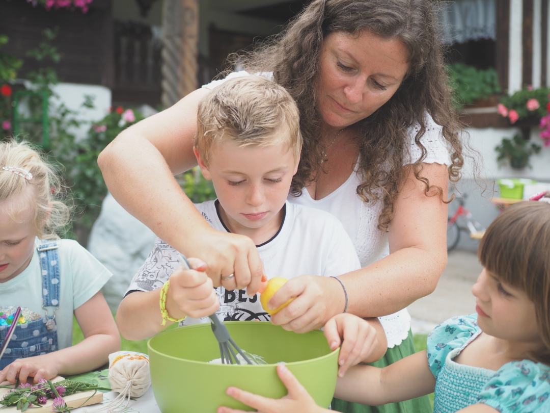 První den jsme se byli seznámit s celou rodinou a říct si, co všechno je u nich možný vyzkoušet, vidět a dělat. Martha je maminka dvou dětí Pauliho a Simona a stará se hlavně o bylinkovou ECO zahrádku, jelikož bylinkám opravdu dobře rozumí. Pracovala dlouho v lékárně a je v tomhle oboru i vystudovaná. Christian je tesař, takže celý život pracuje hlavně se dřevem. Peperl je Christianova maminka a stará se především o zvířata. Každej den taky peče čerstvej chleba podle receptu, kterej se dědí z generace na generaci. Stejně tak se u nich v rodině dědí i jejich rodinnej statek Höchbauer. Stará se o něj už několikátá generace a práce je na něm pořád dost. Já osobně tohle hrozně obdivuju. Hlavně pak když člověk vidí, co je za vším práce. Navíc neberou ECO jako značku a trend, ale opravdu se snaží o rostliny i zvířata starat tak, aby měli ty nejlepší podmínky.