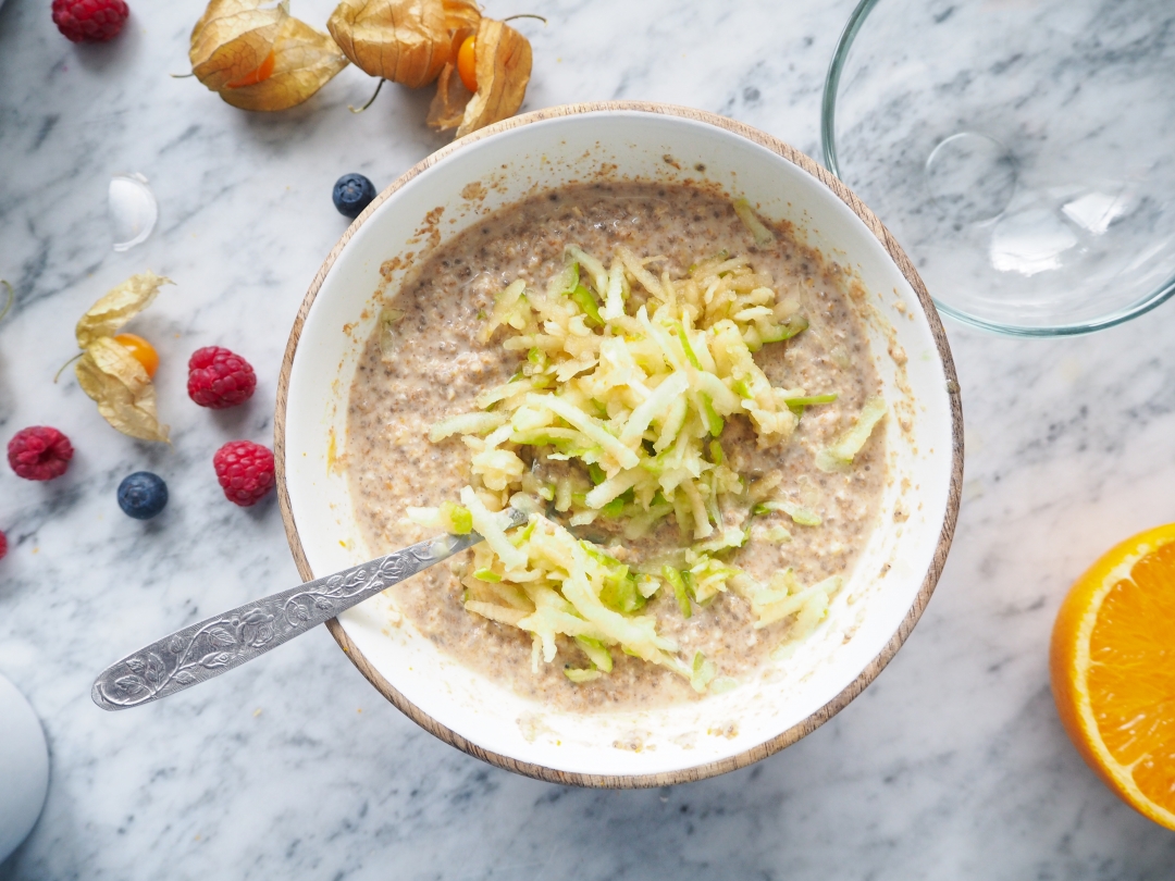Největší výhoda je, že si ji večer připravíte a ráno jenom přistrouháte jablko a můžete rovnou podávat. Nebo si ji i s krabičkou vzít třeba do práce.
